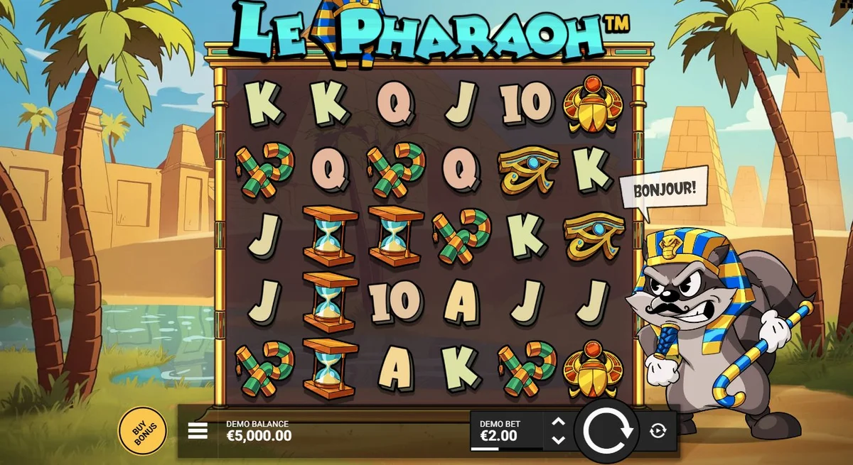 Orçamento de R$1.000 — aposta de R$5-10. A volatilidade média do Le Pharaoh com bônus de alta variância precisa de 200+ rodadas pra ter chance real de ativação orgânica.